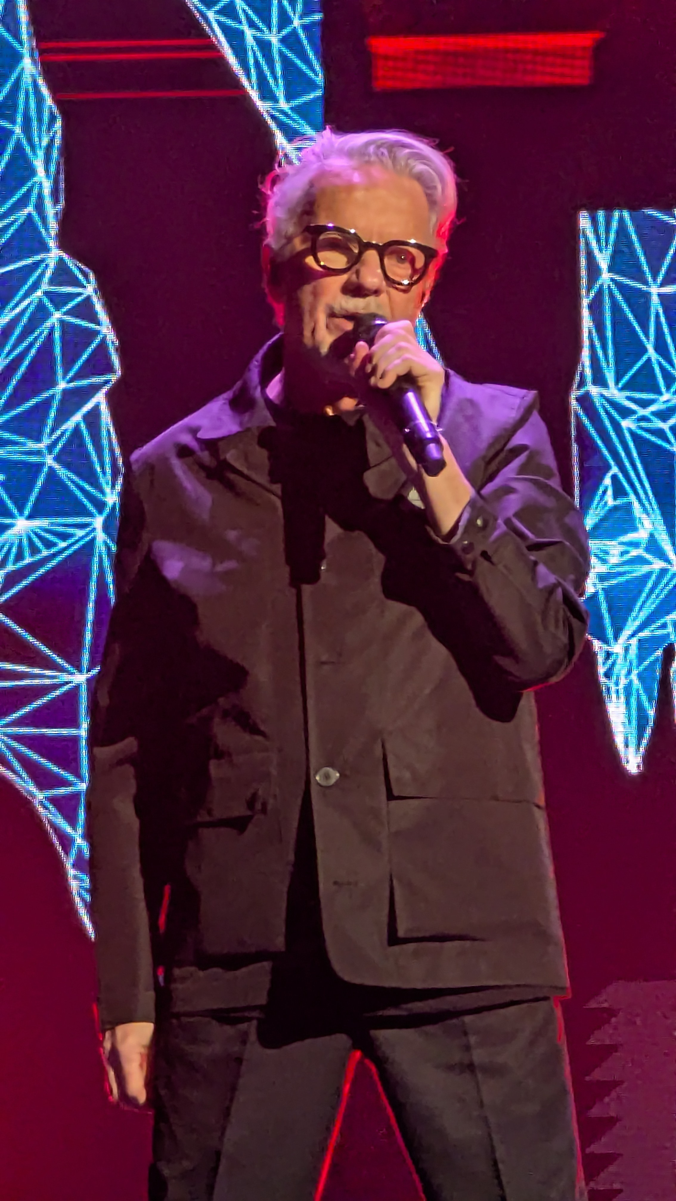 The evening opened with the satirical corporate posturing of the Rod Rooter video, setting a tone of playful hostility that transitioned into the mechanical precision of “Don’t Shoot (I’m a Man).” While the crowd appeared briefly paralyzed by the sheer clarity and volume of the sound, the band showed no signs of hesitation. By the time the jagged synths of “Peek-A-Boo!” filled the hall, layered over a visual collage of the band’s storied history, the friction between the aging demographic in the theater and the timeless energy on stage began to spark. There is a delicious irony in watching a room full of seasoned adults navigate the sticker shock of seventy-dollar energy domes while the men on stage, now in their mid-to-late seventies, perform with the rhythmic intensity of teenagers.