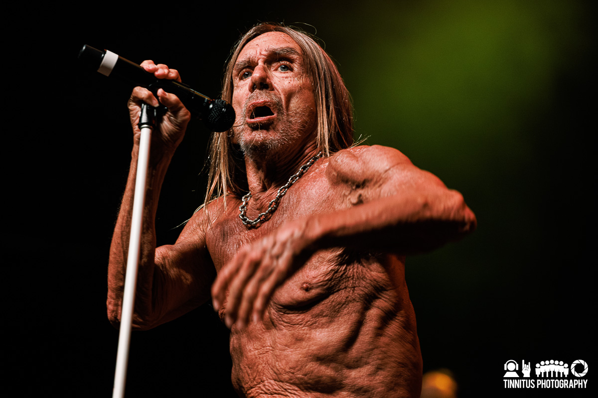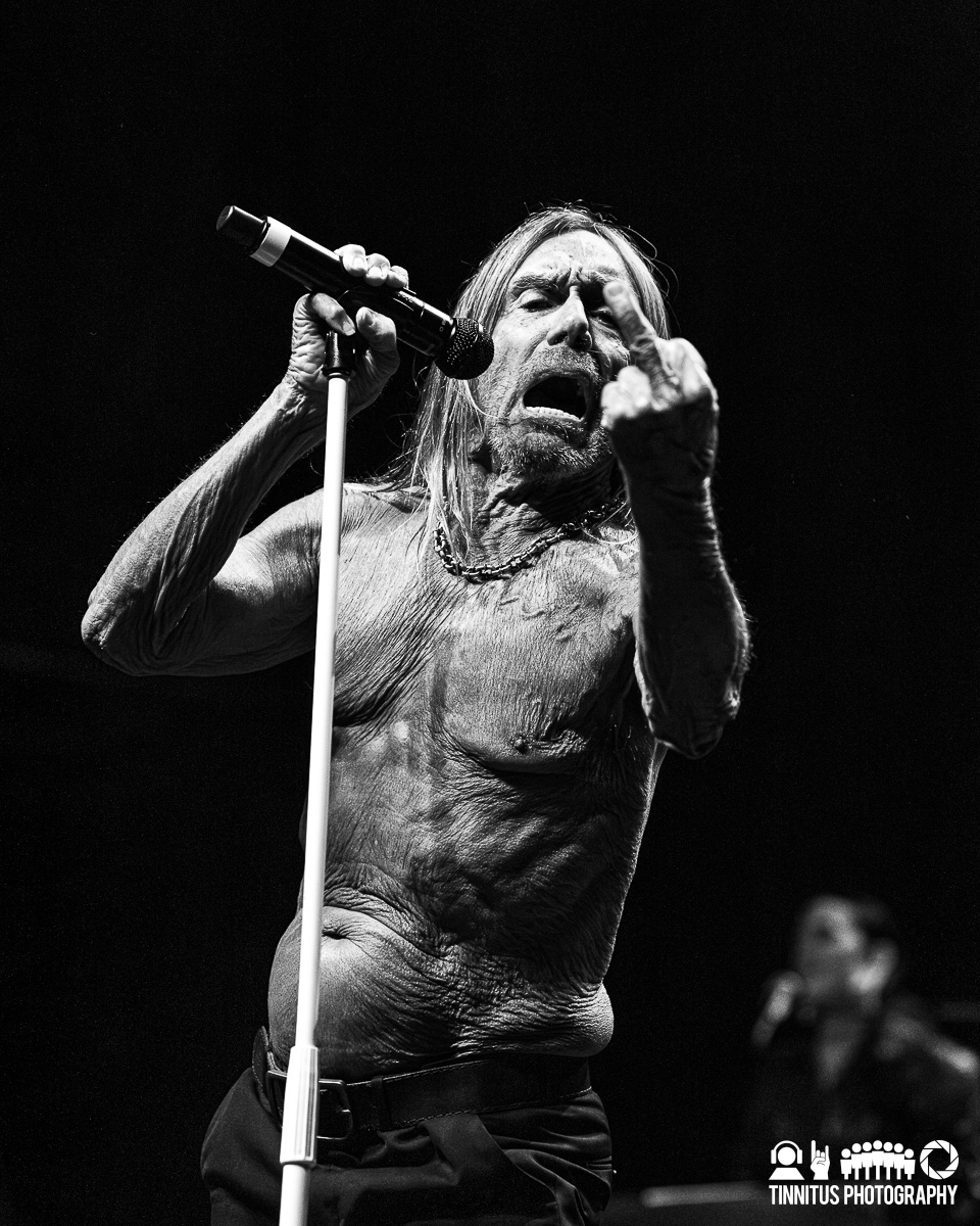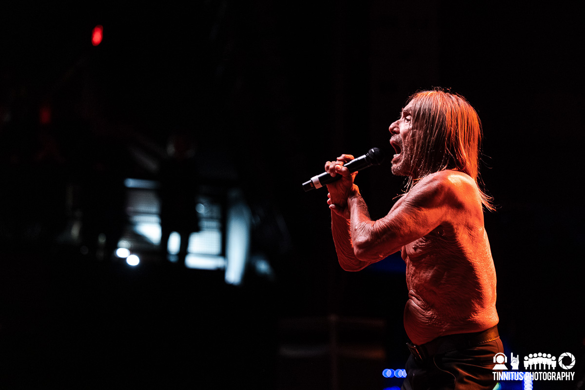 Just like Black Sabbath is considered the wellspring for hundreds if not thousands of metal bands, a similar re-tracing of hard rock bands would place Iggy and The Stooges as ground zero for inspiration, and he let the crowd know that right out of the gate. “TV Eye,” “Raw Power” and especially the bristling “I Got A Right” burned with energy, Iggy ambling around the stage, shirtless as ever. Well, he did come out wearing a vest but that lasted about 13 seconds.