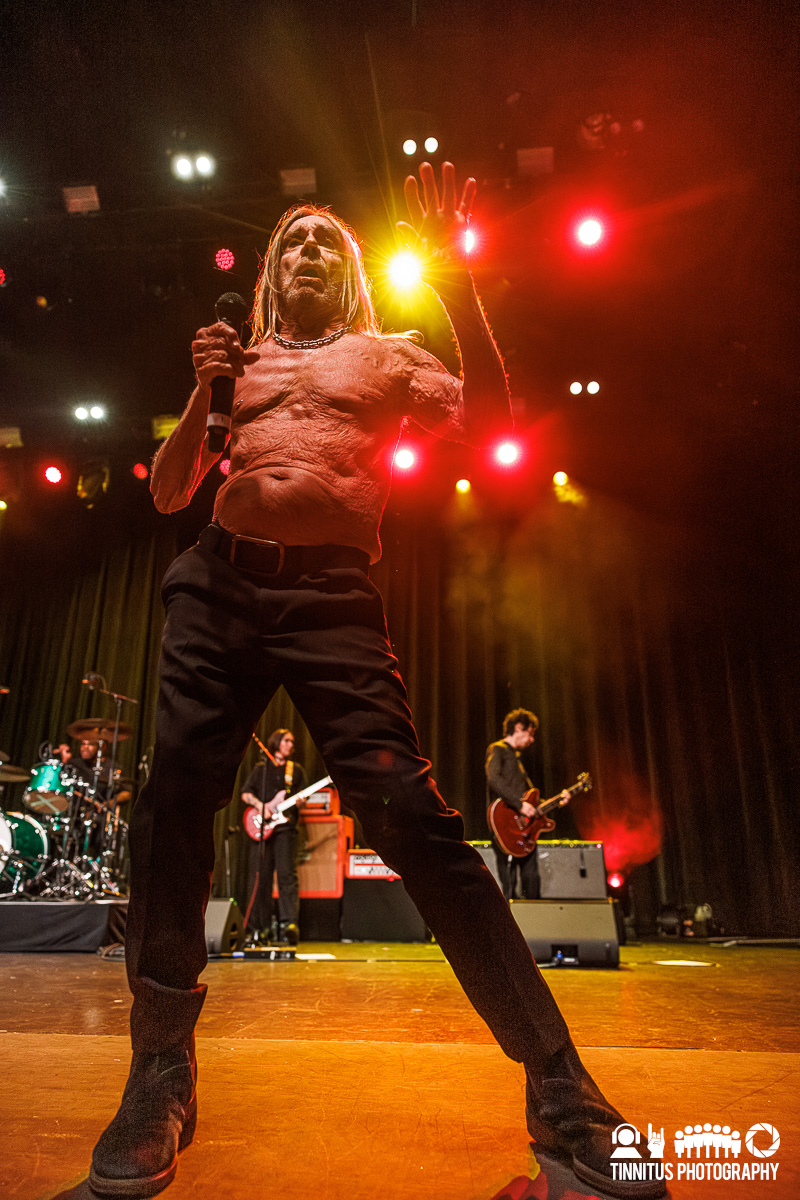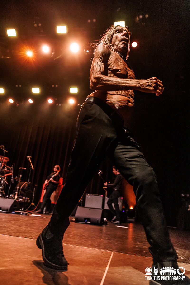 Against improbable odds, James Osterberg is the last Stooge standing. (OG, no offense to the mightily talented James Williamson). It had been close to a decade since Iggy Pop last played Boston and he pulled together another crack band to propel some of the most explosive rock music ever minted. Nick Zinner (Yeah Yeah Yeahs) and Ale Campos (Las Nubes) held down the guitar slots, Urian Hackney (Rough Francis, also the son of early ’70s proto-punkers Death also from Detroit) had drum duties, Joan Wasserman (as Policeman) was behind the keyboard stand, Brad Truax (Interpol) laid down the low notes, and instead of a sax player doing Steve Mackay’s parts, Iggy enlisted a trombonist and trumpeter that gave an extra boost to the brass as well as different shading.
