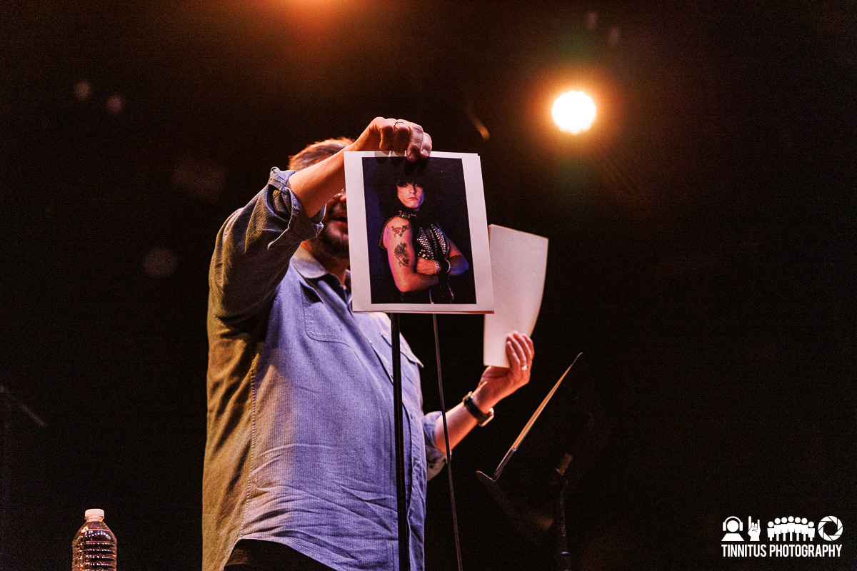Meanwhile, Boston resident Eugene Mirman took over next, reprising and updating his classic bit about finding random celebs on Venmo and sending them money, like sending $150 to Nikki Sixx annotated “For housecleaning.” He also made some custom bumper stickers that were pretty funny. He ended with an relevant anecdote of his time with Stipe at Peter Buck’s short-lived music event in Todos Santos where he got mugged by the Mexican police, taking his $100 in pesos and wishing he’d stuffed his pockets with brie cheese instead. “You fucked with the wrong American!”