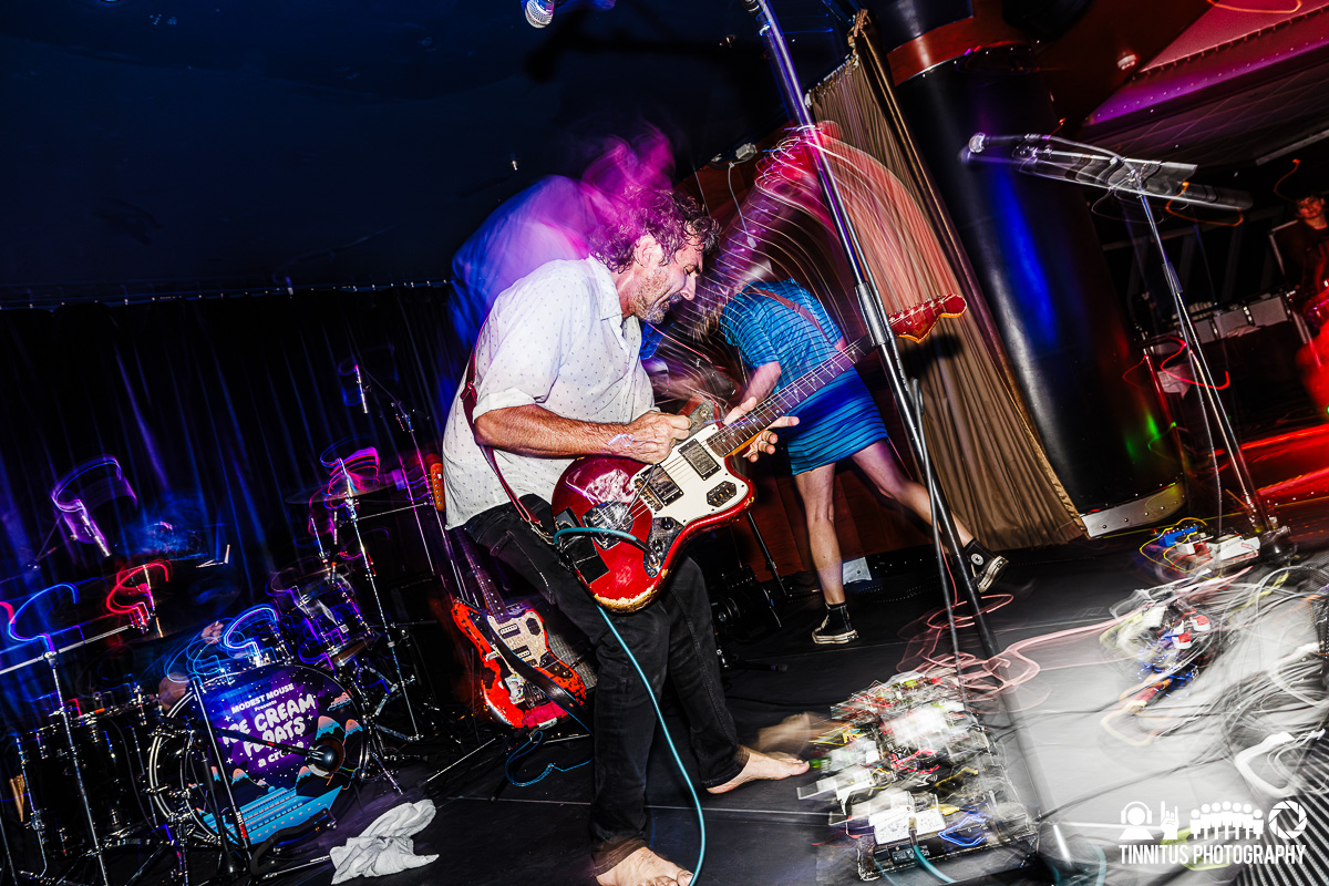 Word of mouth was effective, as their next two shows were definitely fuller. “Braindrops” is the perfect opening song for people unfamiliar with the band, it’s shadowboxing rhythms from Fiona and Hammel counterpunched by Erica’s staccato guitar attack while Gaz howls his guts out. They are a band that leave nothing left in the tank each and every show, drenched with sweat and thoroughly spent. “It’s good to be on a boat full of kooks” remarked Gaz towards the tail of their final performance at the Spinnaker, the room full with recent converts. Side note – I heard that the boat captain’s quarters were located on the floor directly below the stage, and he was less than impressed with the sonic blast he had to endure for 75 minutes. A final word on TFS: they usually cover a song from a couple of pivotal Australian bands, and over the course of the three nights we got both. Erica led a blistering take of The Saints’ “This Perfect Day” as well as their super fun version of Bee Gees’ “Stayin’ Alive” that closed down the last of the concerts for the trip, and what a way to end it.