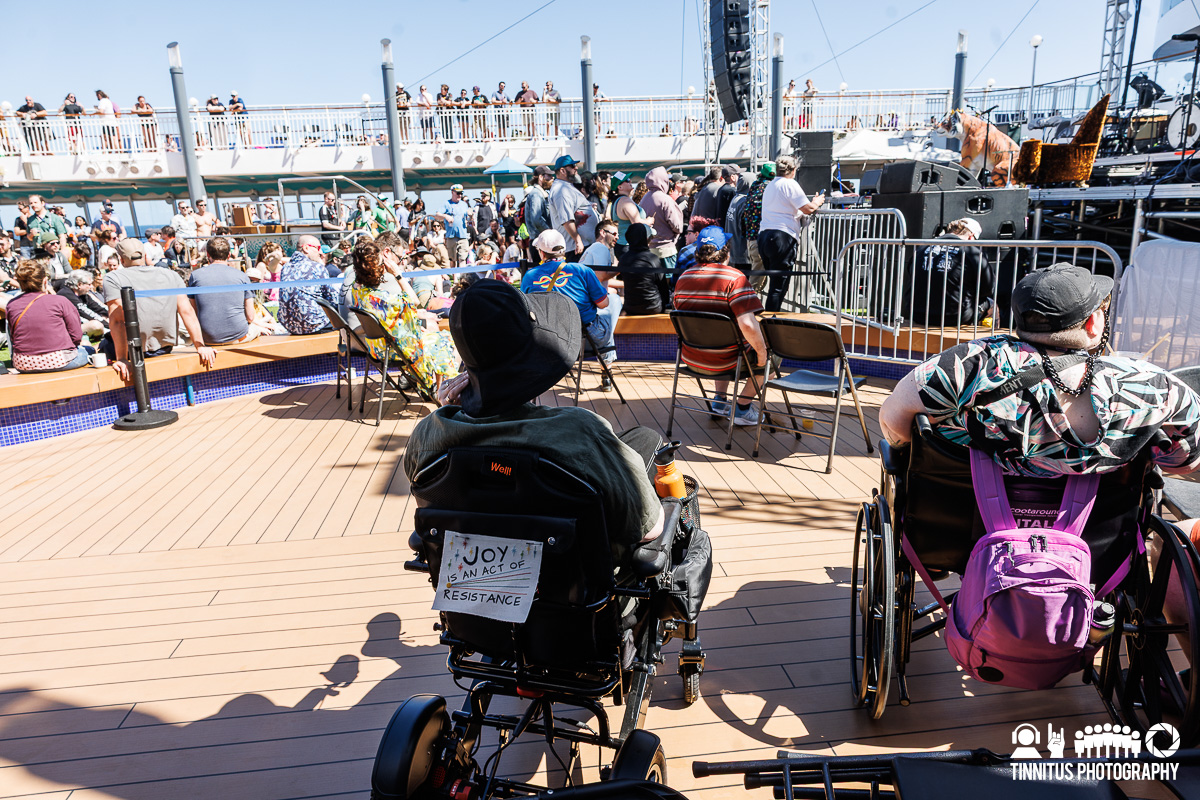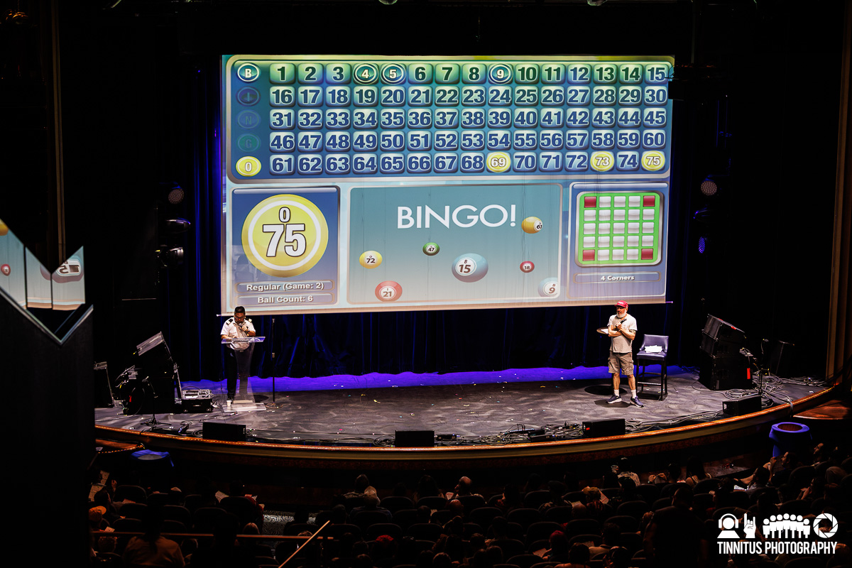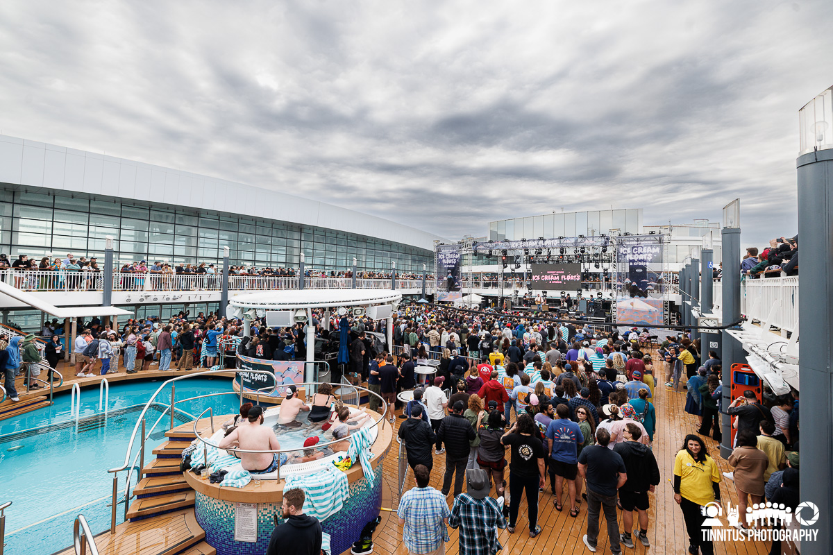 I’d never been on a cruise ship before so I wasn’t sure what the stage capacities were like, but none of them ever felt crowded. Sure, the rail birds would show up early at the pool stage to ensure prime viewing at the largest stage on the Pool Deck, but the Stardust Theatre’s seated layout offered plenty of great vantage spots. The third stage was tucked in under O’Sheehan’s (proof that you can find an Irish bar anywhere on this planet), offering bi-level viewing, and the smallest room (Spinnaker Lounge) was high up and forward on the ship, as the name implies.