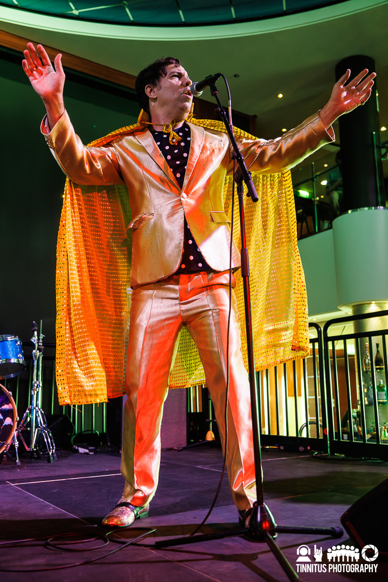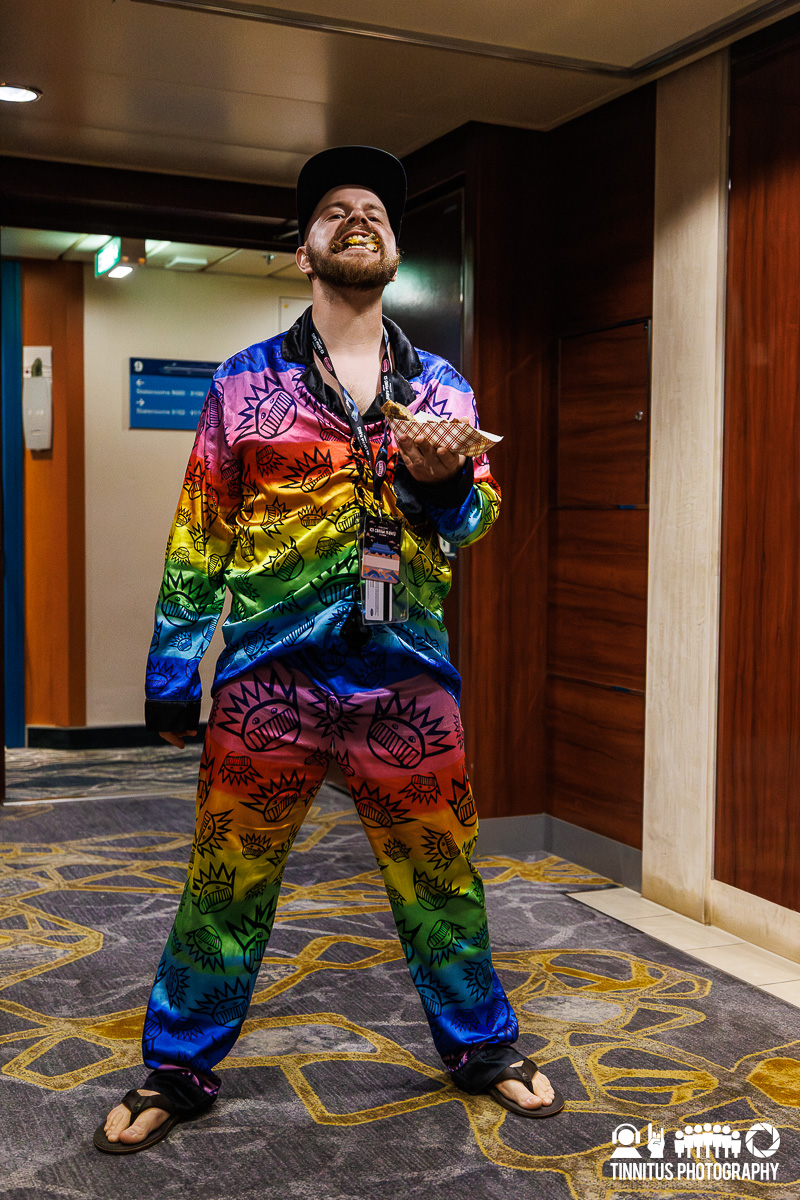 Mattress entered my world when Rex Marshall was chosen to open one some of the dates when Modest Mouse performed The Lonesome Crowded West a few years ago. I was caught by surprise then but knew what was in store this time, and he did not disappoint. “I was hoping for a submarine, but this ship will do” before starting his first set. Gold cape? Check. Gold lamé suit? Check. Bespoke loafers (or as he put it, his work shoes)? Check. Marshall’s schtick is pretty simple and devastatingly on target. Pre-programmed beats with a semi-stream of consciousness vocal delivery, riffing on things like the buffet, our increasingly devolving society, and living in a car. He’s a weird hybrid of crooner phase Nick Cave and a less histrionic and more self-effacing Ian Svenonius but 100% Rex Marshall, a true low-key highlight of the entire event.