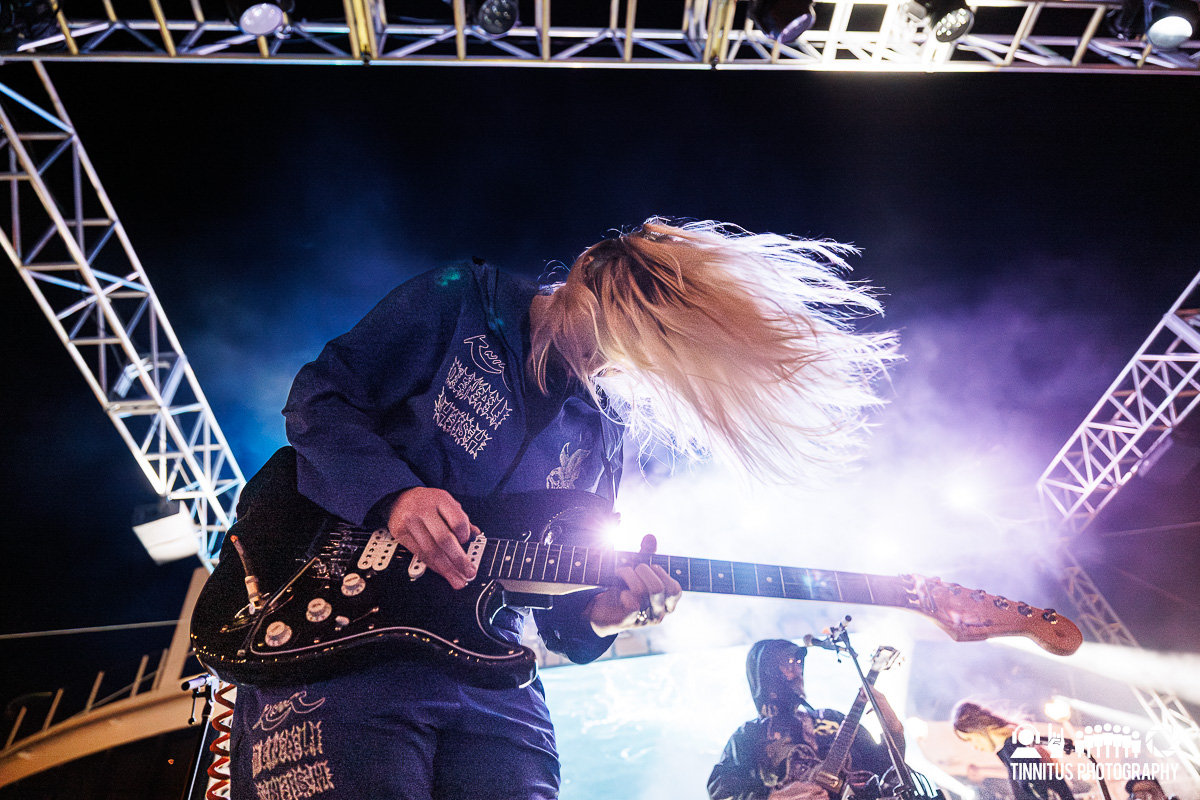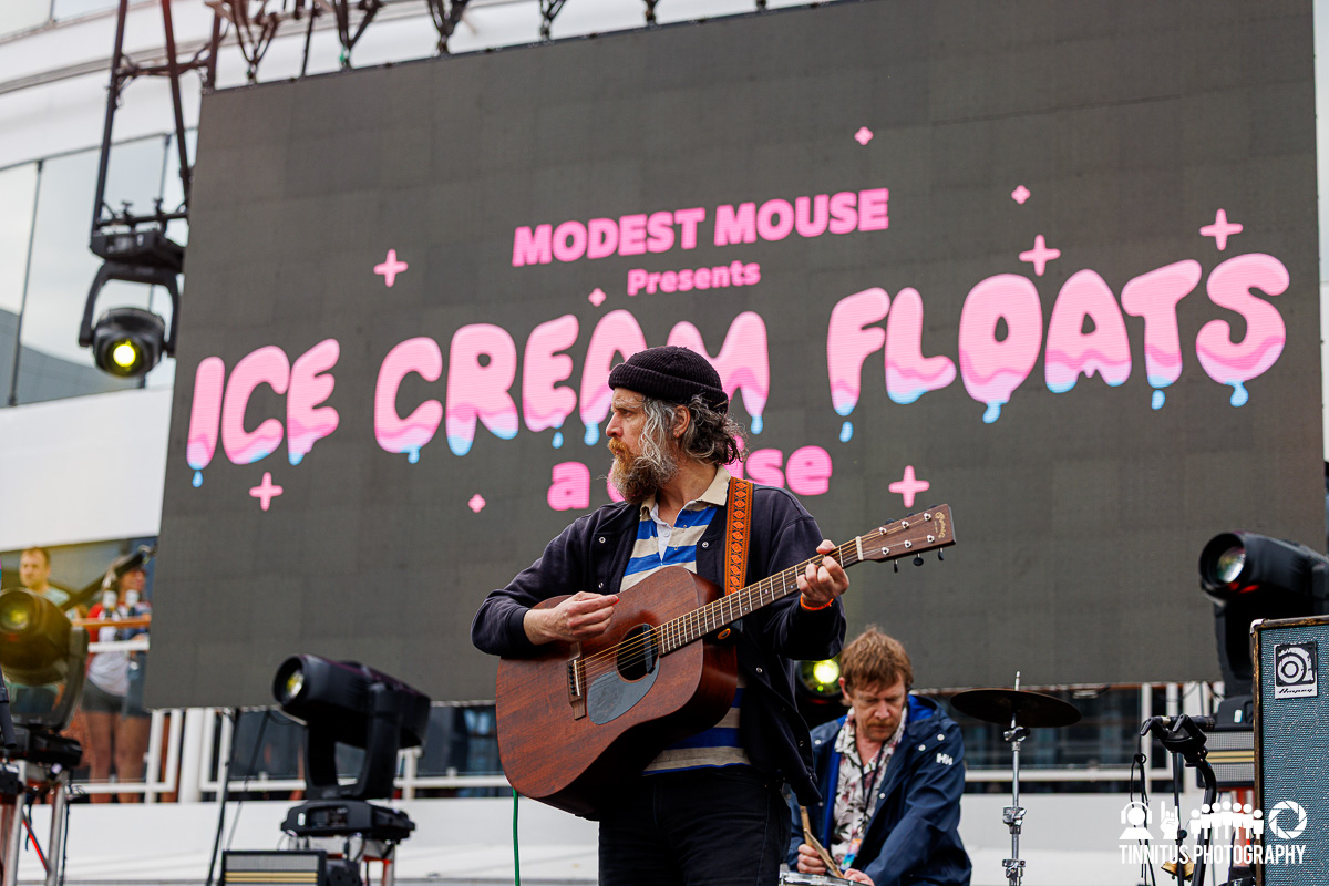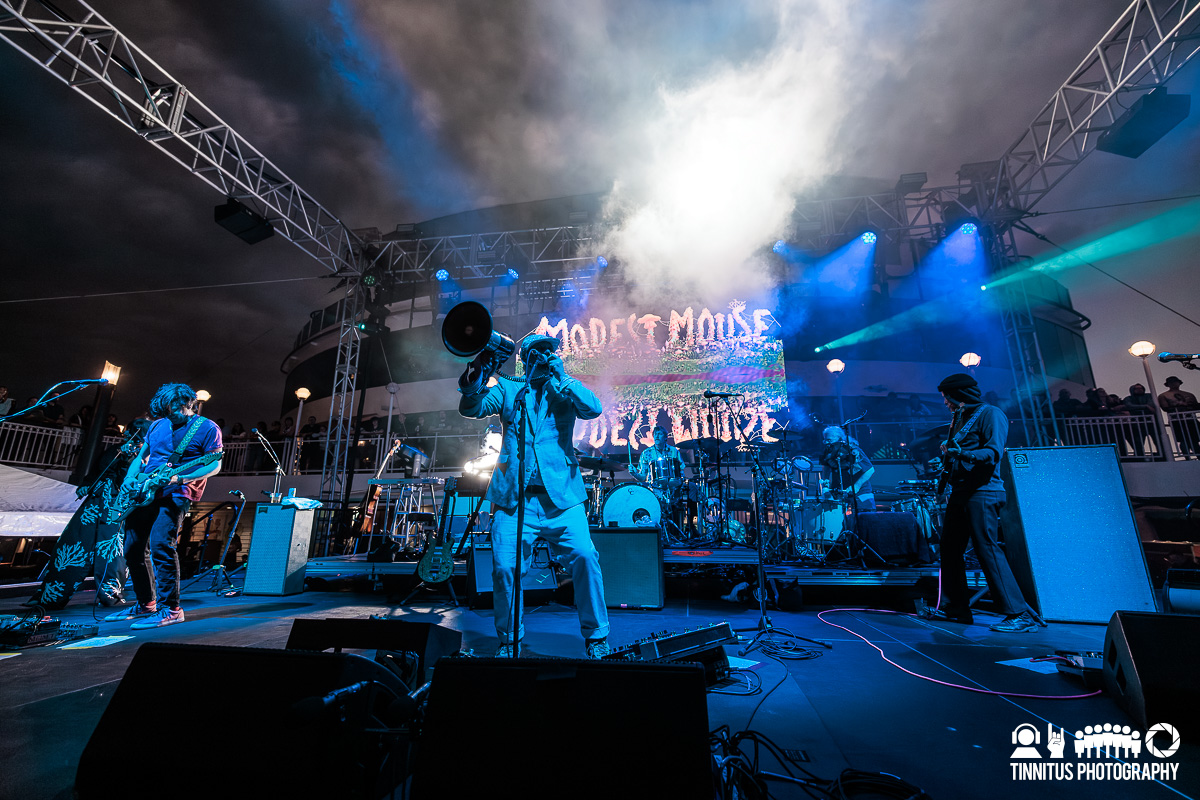 The heavy hitters of the rest of lineup included Portugal. The Man, Kurt Vile and the Violators and fellow PacNW’ers Built To Spill who are no strangers to playing with Modest Mouse. PTM played after the ‘fan chosen deep cuts’-sourced Modest Mouse set (more on that later) and they must have felt the sonic attack that Tropical Fuck Storm unleashed in the Stardust, blasting out the gate with some gnarly, knotted guitar work courtesy of Liv Slingerland on “Denali” and the thrashy “Pittman Ralliers.” This was not the sound I expected from the band whose dancey, vocal-driven “Feel It Still” is about the only song I was familiar with. There were plenty of people who were out in force for both of their pool deck shows, not surprising given their upbeat, poppy approach, and a nice treat for fans came during their second set when they decided to play The Satanic Satanist in full.