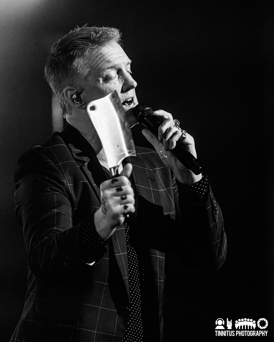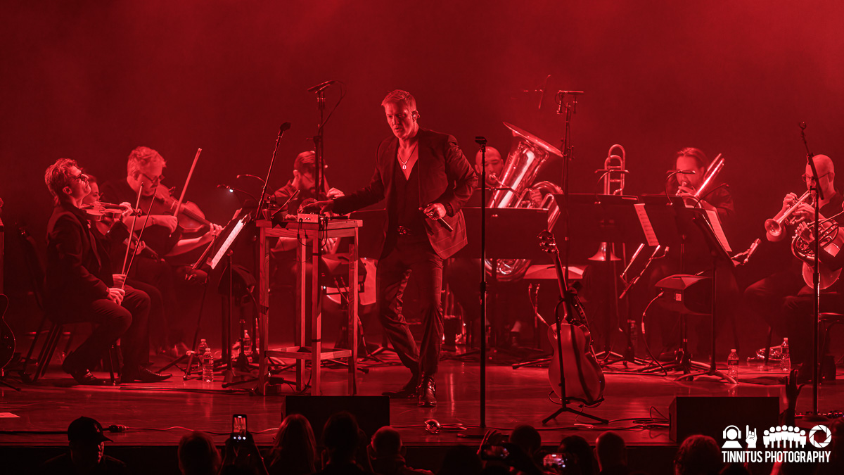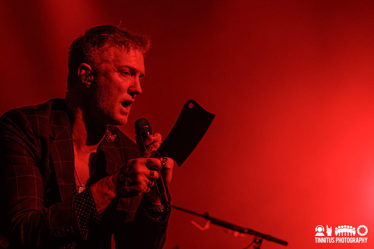 The second act started with the scrim falling to the floor, revealing a brass section to augment the strings, with the band members taking hold of their usual instrumentation. Now bathed in red, Homme grabbed a butcher’s cleaver from a small cutting board and kept in motion, coming down into the crowd at one point. The music was not as sparse as the first act, but kept the theme of unexpected songs with unique arrangements. The strings and horns on “Mosquito Song”‘s studio version was a perfect fit for the evening, but did anyone not peeking at setlist.fm see “Spinning In Daffodils” coming? It’s a safe bet that the supergroup of Them Crooked Vultures isn’t materializing any time soon so hearing that track was like finding a splinter from the cross.