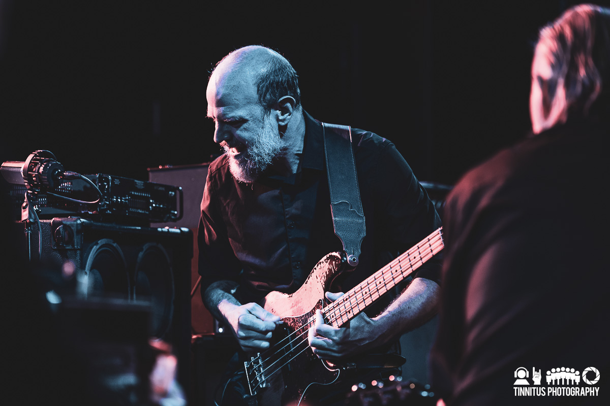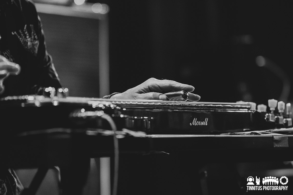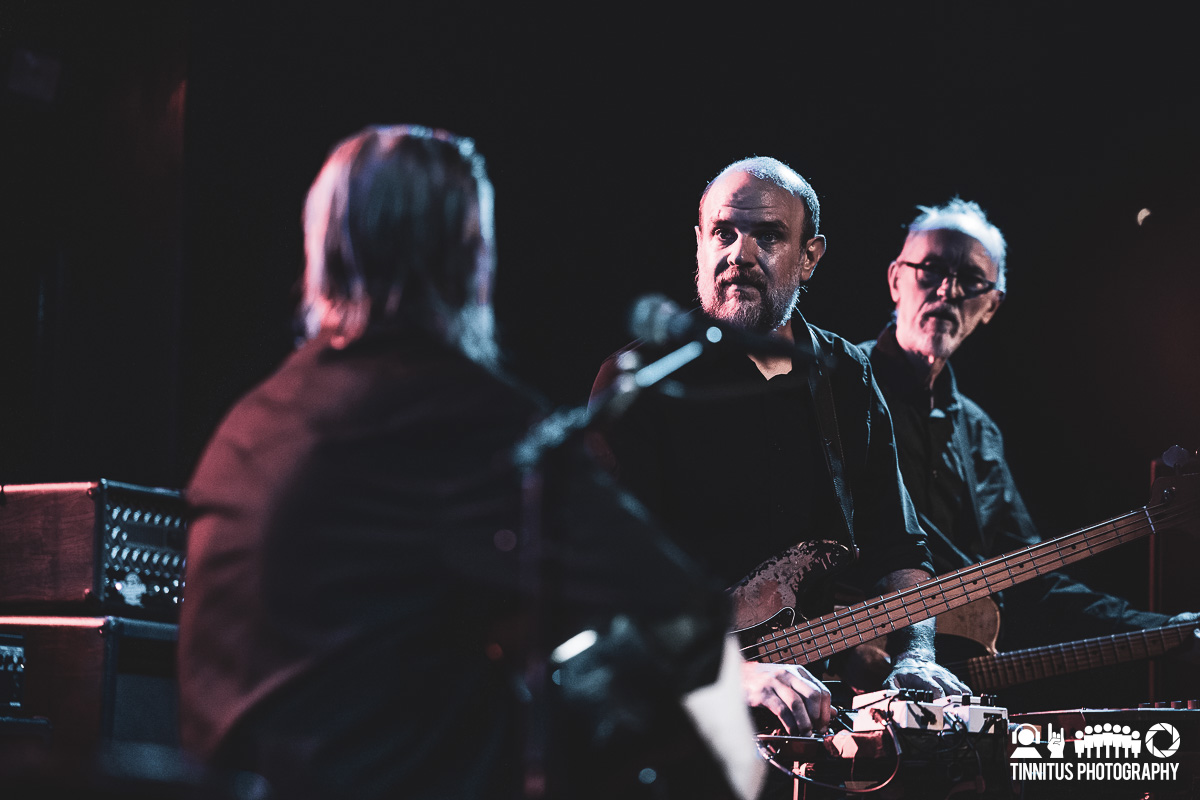 Big swells of crushing sound were the norm, mainly fueled by Pravdica’s insistent bass lines that formed the bedrock where Hahn and Dana Schecter’s pedal steel guitars created supersonic static blasts that careened around the room. Bad Seed drummer Larry Mullins chipped in via a variety of ways, with keyboards, what looked to be analog synths and occasional percussion, and Schecter played bass alongside Pravdica a few times.