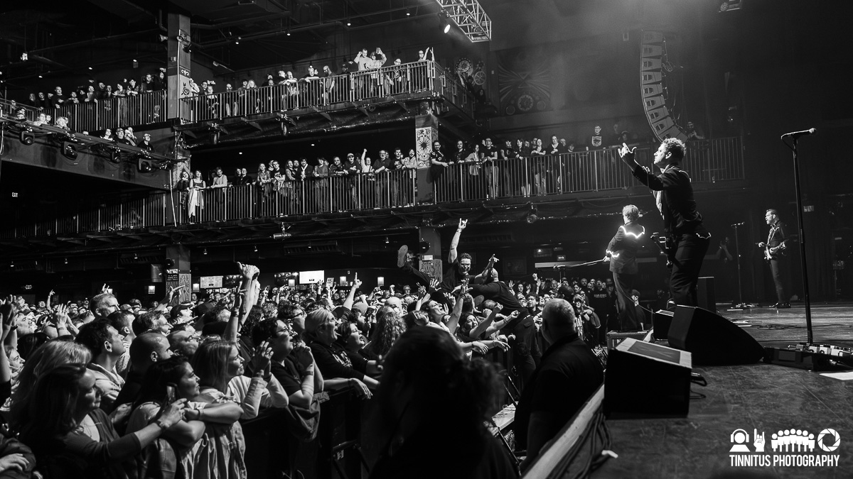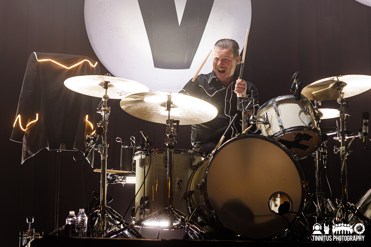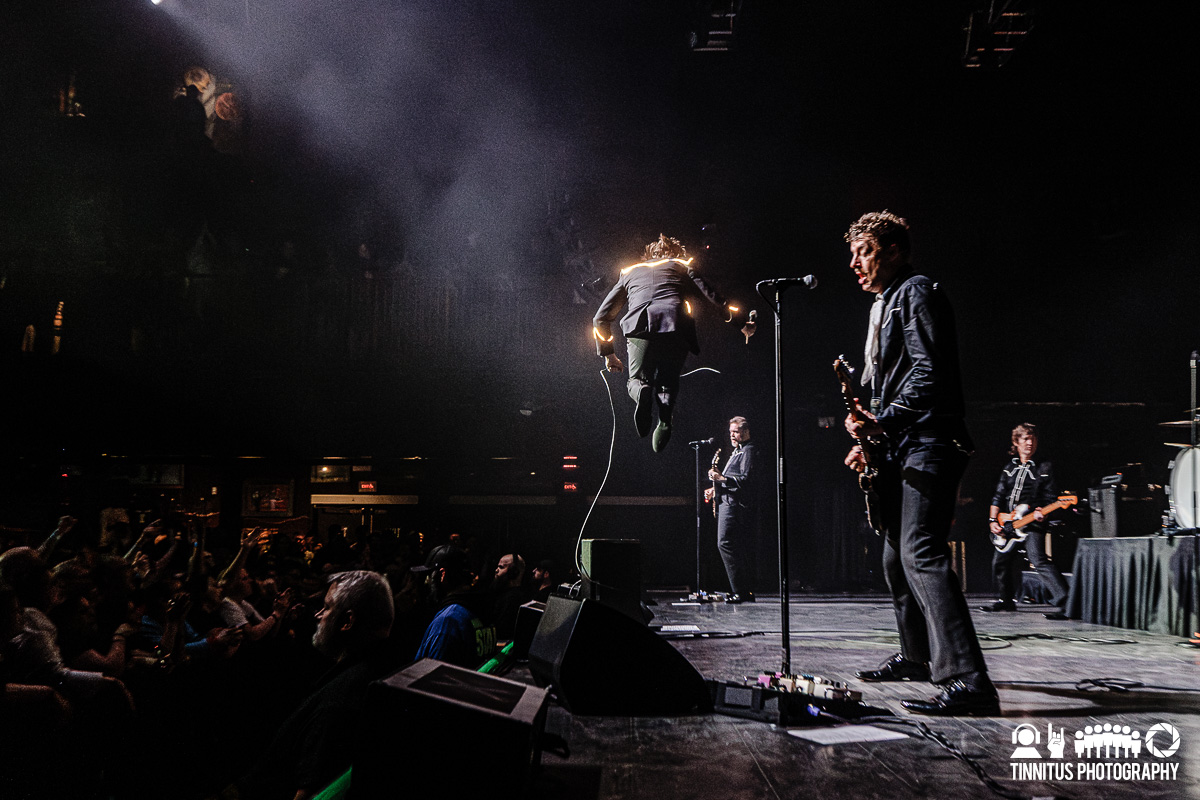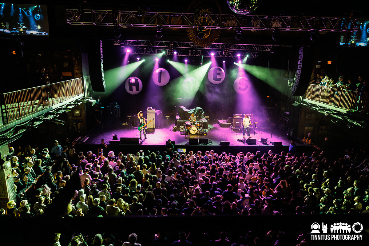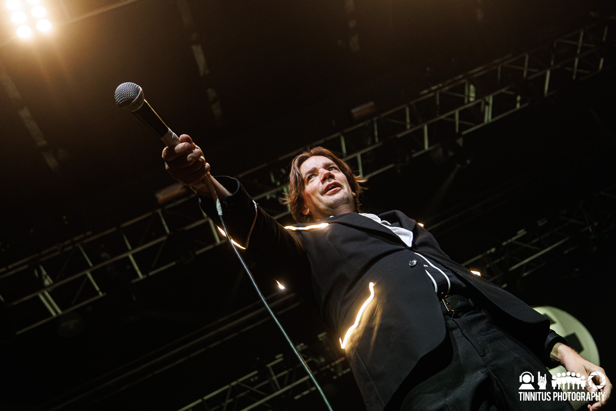 It was fitting that when the bands hit the stage for their respective sets, both lead men had one or both feet elevated a few feet off the stage. The last time I saw The Hives, singer Pelle Almqvist was nursing a knee injury that tempered his acrobatic feats he’s known for. Not so tonight, the charismatic front man was on and off the stage, greeting fans at the rail on a somewhere frequent basis.