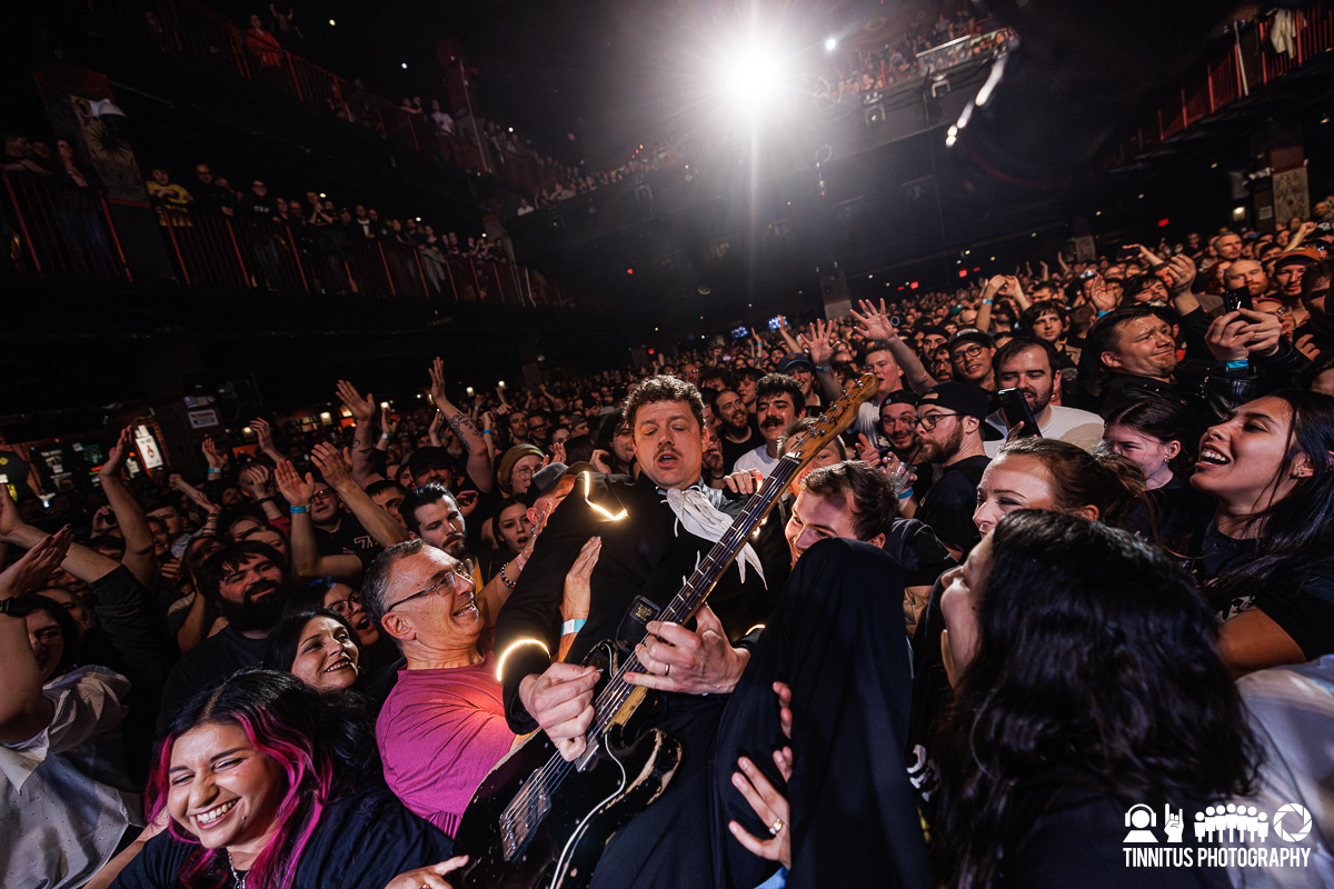 “We crossed oceans and slayed dragons! We’re poor immigrants and paid the tarrifs. Actually, you guys did, sorry for jacking up the ticket price. Consider it a 25% tip, we’re trying to get with the American customs.” Decked out in bespoke suits with LED piping, the rock and roll engine came out of the gates at high RPMs and never let up. “Enough Is Enough” stands shoulder to shoulder with Hives classics like “Hate To Say I Told You So” or “Tick Tick Boom,” when Almqvist went into the crowd and towards the farthest reaches of the room.