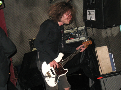 Frontman Tonyó Szabó, with his stylish jacket and heart-throbby good looks, reminded me a little of Maxïmo Park’s Paul Smith. Throughout, he energetically worked the stage, using hand gestures to punctuate his lines, wrapping his mic around his neck while manning his keyboard, and occasionally jumping on top of a monitor. He even ventured into the audience once, so fascinated was he with one fan’s unique, Ian Curtis-like dancing style (I saw the same guy displaying his dance moves at Exit Clov’s Rockwood Music Hall show last February, so he definitely has great taste in music!). Though Szabó was the focal point, his tightly-wound bandmates matched his own enthusiasm. Despite the loss of Bajor, now lone guitarist Miguel György’s gnashing leads still roared, and were consistently pushed to the limits by the formidable, long-haired rhythm section of bassist Csaba Szabó and shirtless drummer Gergő Dorozsmai.