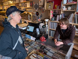 Columbus is spoiled, there’s an embarrassment of record store riches in Ohio’s capital city, and I knew I could fill Matthew’s afternoon with an adventure around town. Brady responded quickly and told me Matthew was interested and that he had 4 hours to spend with me. So, on a rainy Spring afternoon, I picked up Matthew outside of the A&R Music Bar where Nada Surf would play later that night and started the tour. First stop, Spoonful Records (144 E. State St.) which was just a short drive from the venue.